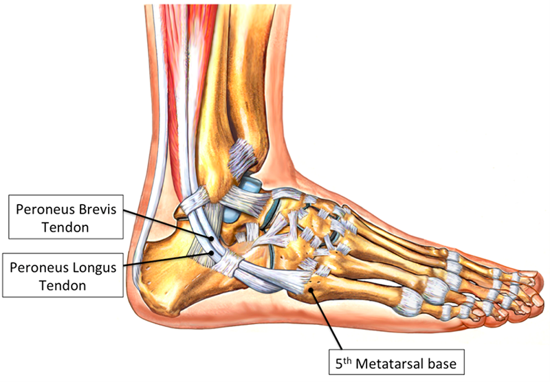 peroneus muscles is being over-stretched and leads to wear & tear.